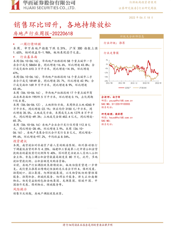 【华西证券】【20220618】房地产行业周报:销售环比回升,各地持续放松-24页 行业研究