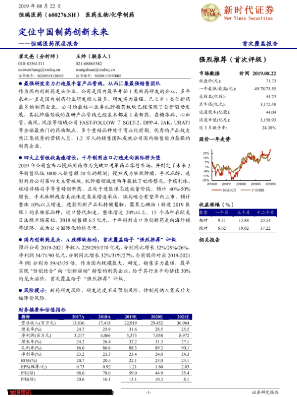 【新时代证券】【20190822】恒瑞医药深度报告:定位中国制药创新未来-80页 行业研究