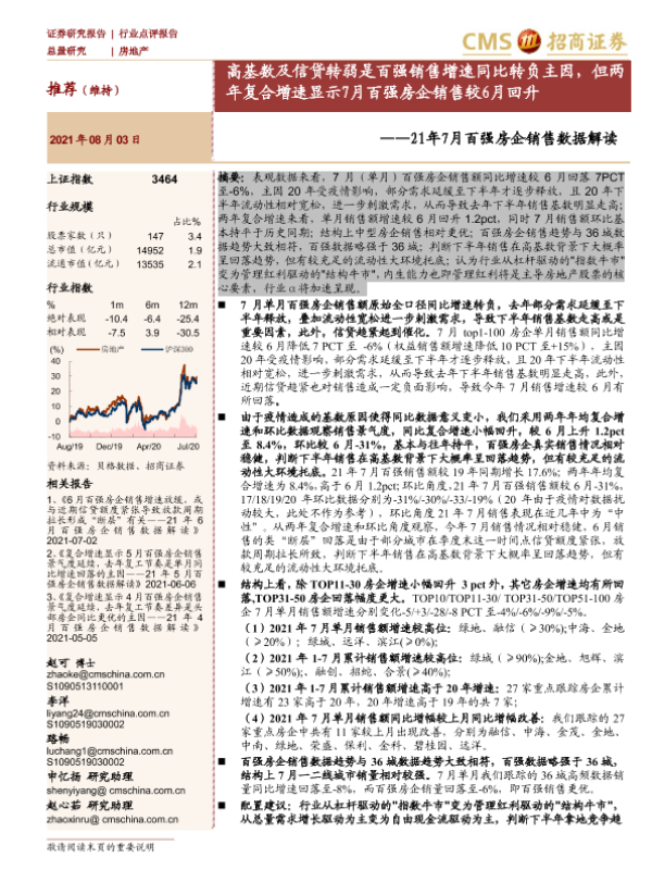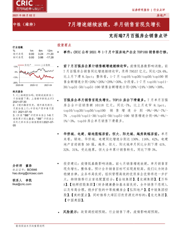 【海通证券】【20210803】21年7月百强房企销售数据解读-3页 行业研究