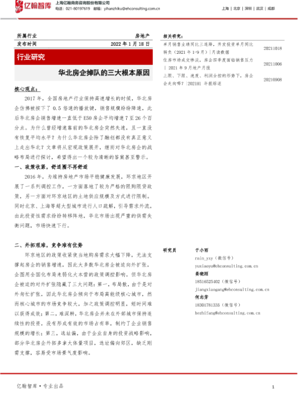 【亿翰智库】【20220118】华北房企掉队的三大根本原因-19页 行业研究