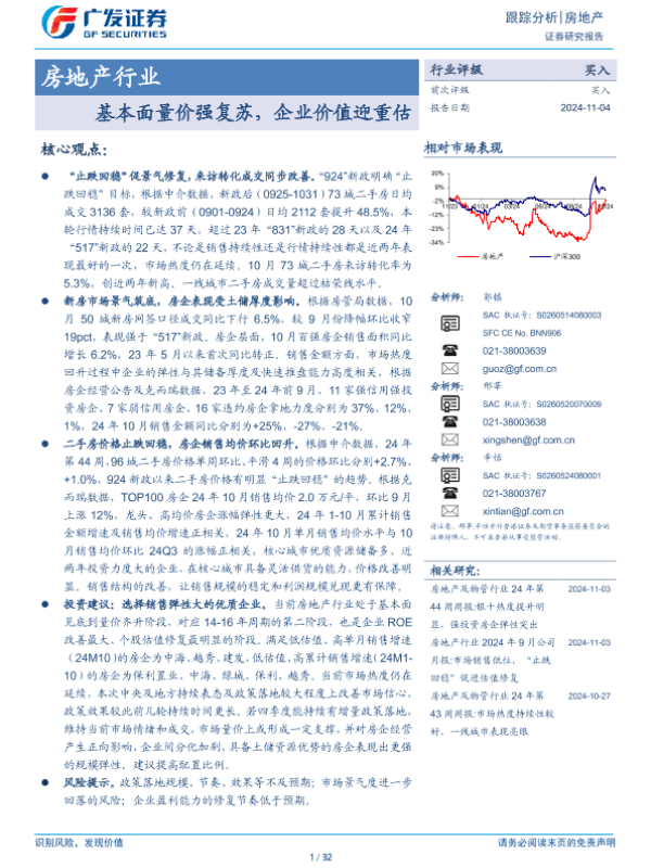 【广发证券】【20241104】房地产行业跟踪分析:基本面量价强复苏,企业价值迎重估-32页 行业研究