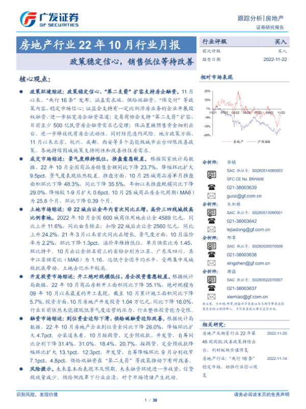 【广发证券】【20221122】22年10月行业月报:政策稳定信心,销售低位等待改善-38页 行业研究