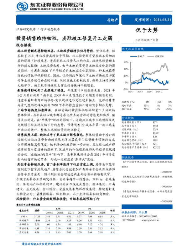 【东北证券】【20210321】投资销售维持韧性,实际竣工修复开工走弱-20页 行业研究