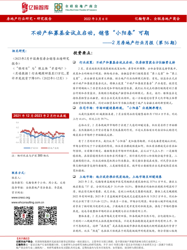 【亿翰智库】【20230306】2月房地产行业月报:不动产私募基金试点启动,销售“小阳春”可期-22页 行业研究