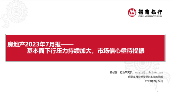 【招商银行】【20230724】房地产2023年7月报:基本面下行压力持续加大,市场信心亟待提振-23页 行业研究