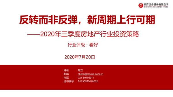 【浙商证券】【20200720】2020年三季度房地产行业投资策略:反转而非反弹,新周期上行可期-21页 行业研究