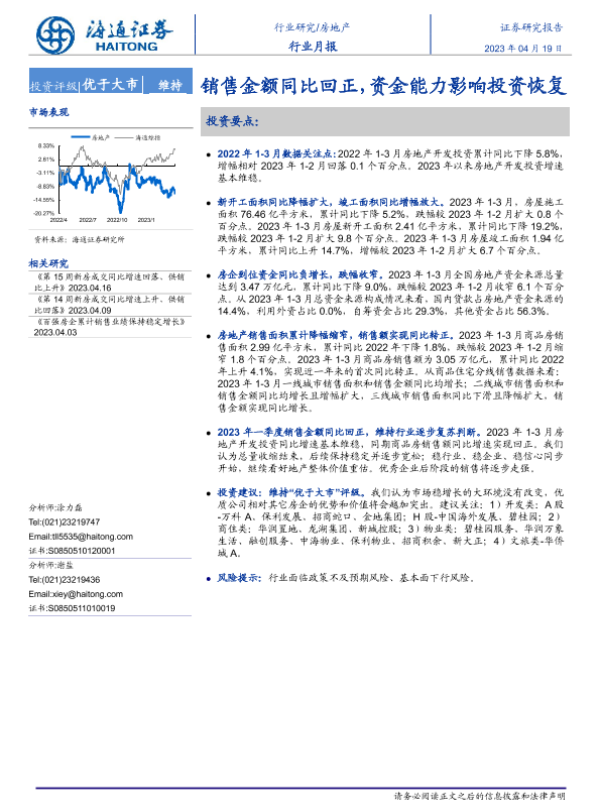 【海通证券】【20230419】房地产行业月报:销售金额同比回正,资金能力影响投资恢复-11页 行业研究