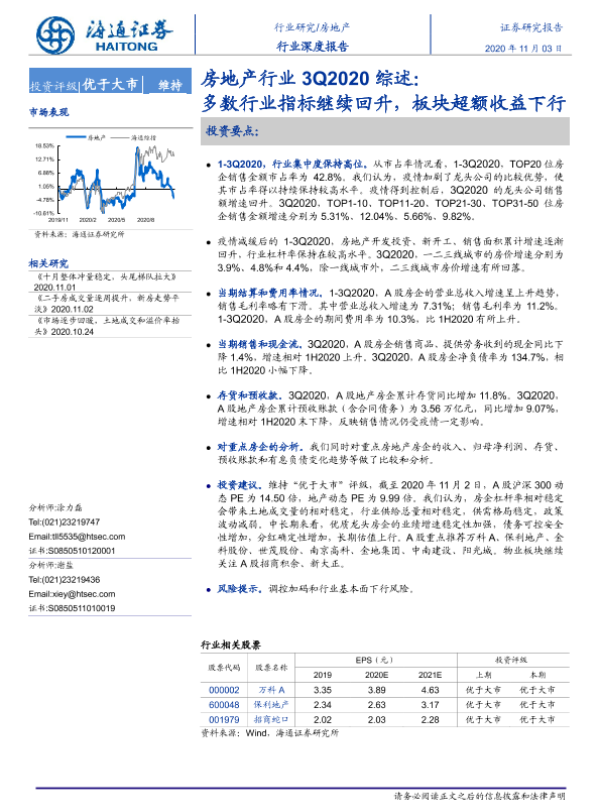 【海通证券】【20201103】房地产行业3Q2020综述:多数行业指标继续回升,板块超额收益下行-26页 行业研究