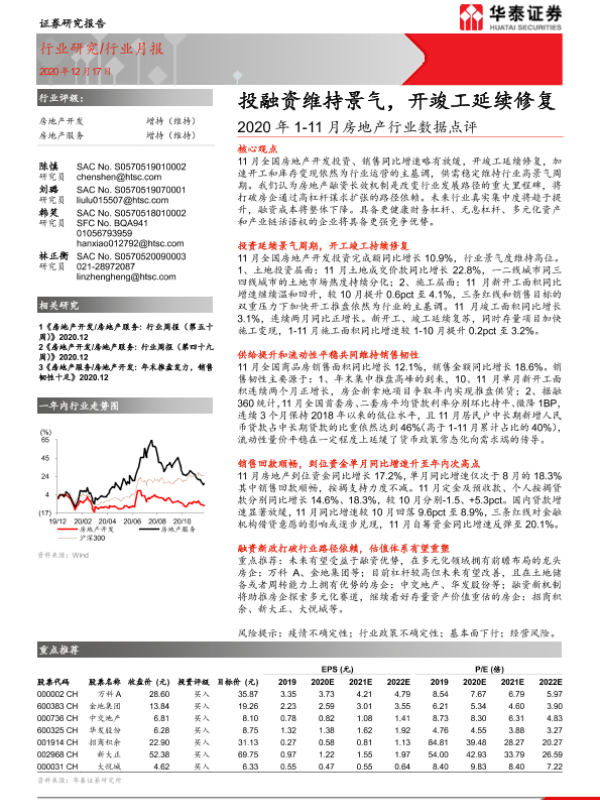 【华泰证券】【20201217】2020年1-11月房地产行业数据点评:投融资维持景气,开竣工延续修复-17页 行业研究