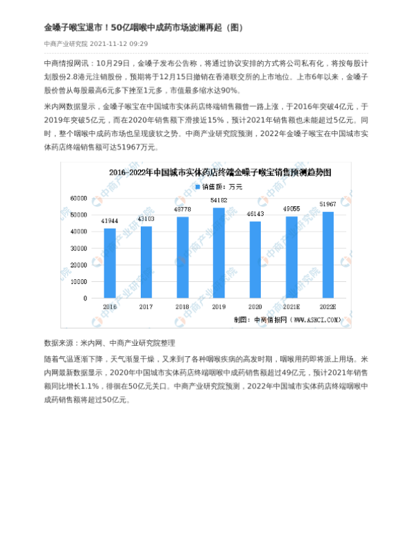 【中商产业研究院】【2022】金嗓子喉宝退市!50亿咽喉中成药市场波澜再起(图)-3页 行业研究