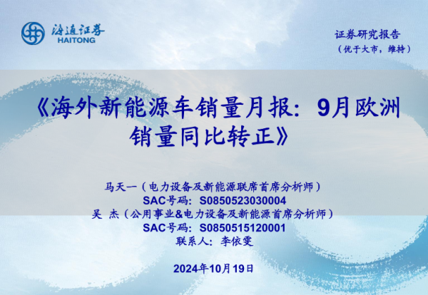 【海通证券】【20241019】电力设备及新能源行业海外新能源车销量月报:9月欧洲销量同比转正-45页 行业研究