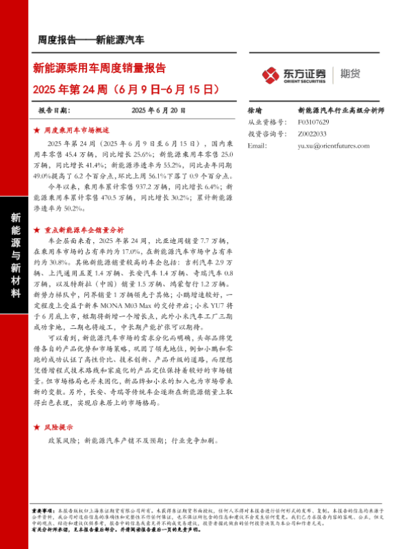 【东证期货】【20250620】新能源乘用车周度销量报告-18页 证券期货研究报告