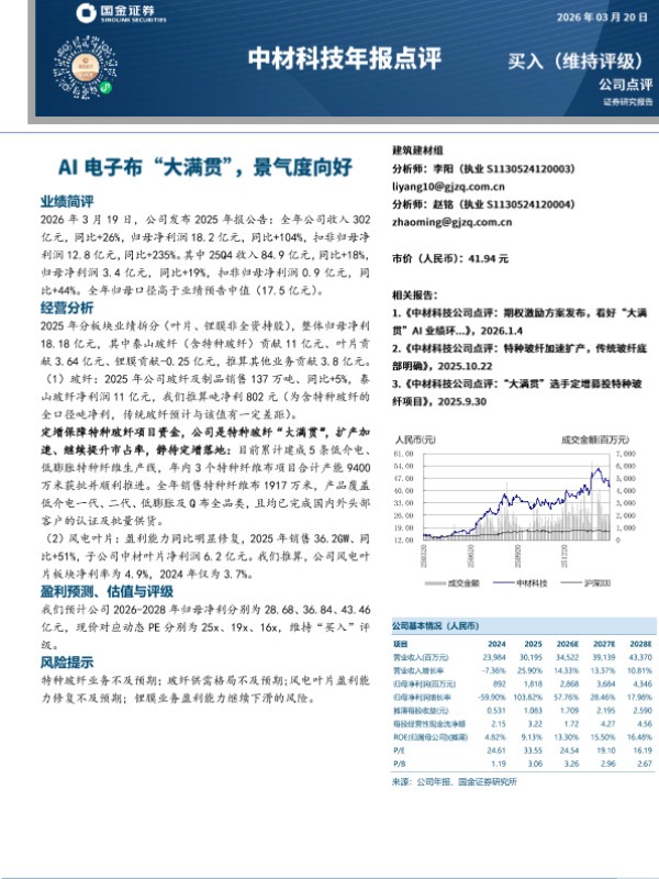 【国金证券】【202603】中材科技年报点评:AI电子布“大满贯”,景气度向好-4页 证券期货研究报告