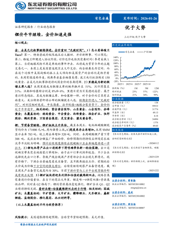 【东北证券】【202601】锂价牛市继续,金价加速走强-11页 证券期货研究报告