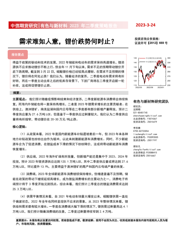 【中信期货】【20230324】有色与新材料2023年二季度策略报告:需求难如人意,锂价跌势何时止?-22页 行业研究
