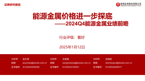 【浙商证券】【20250112】2024Q4能源金属业绩前瞻:能源金属价格进一步探底-10页 行业研究