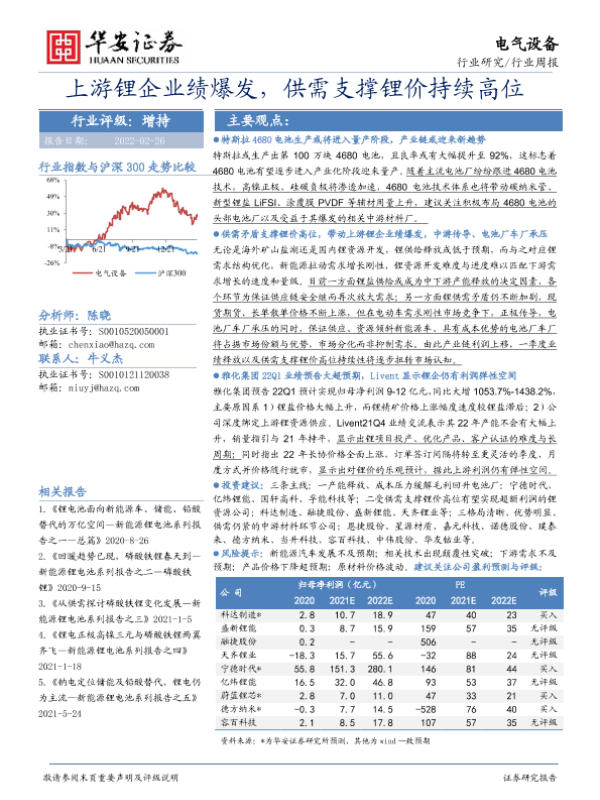 【华安证券】【20220226】上游锂企业绩爆发,供需支撑锂价持续高位-22页 行业研究
