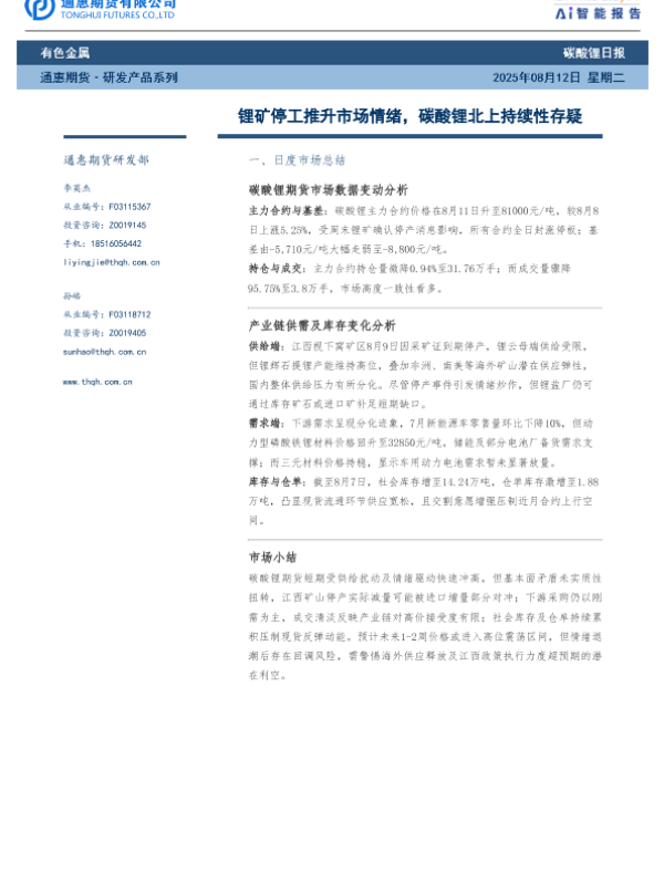 【通惠期货】【20230812】通惠期货-碳酸锂日报-7页 证券期货研究报告