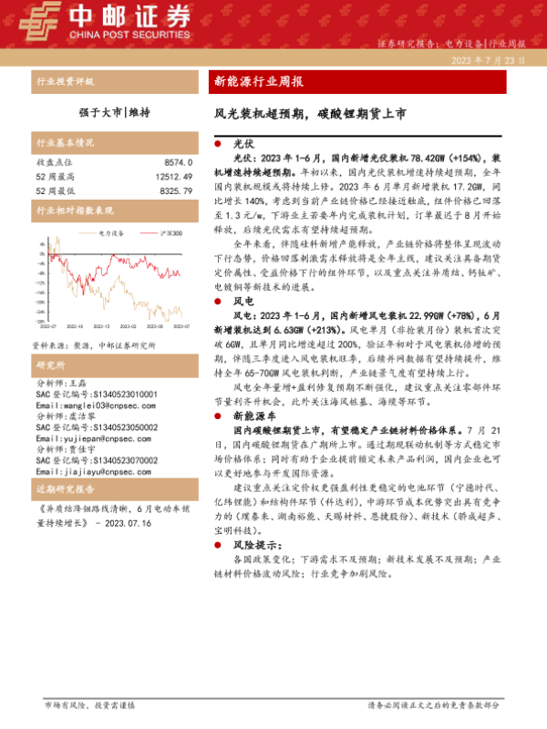 【中邮证券】【20230723】20230723-中邮证券-新能源行业周报:风光装机超预期,碳酸锂期货上市-18页 行业研究