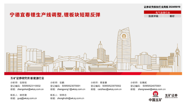 【五矿证券】【20240919】电气设备行业:宁德宜春锂生产线调整,锂板块短期反弹-44页 行业研究