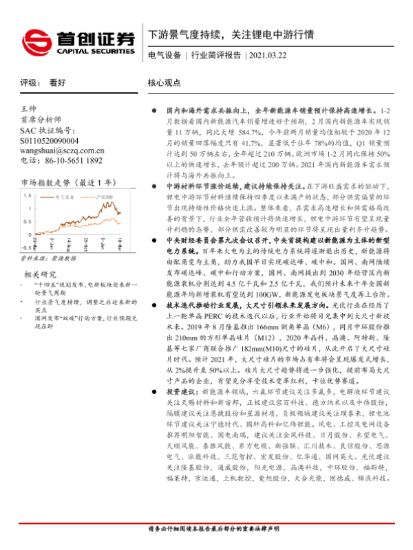 【首创证券】【20210322】20210322-首创证券-电气设备行业简评报告:下游景气度持续,关注锂电中游行情-20页 行业研究