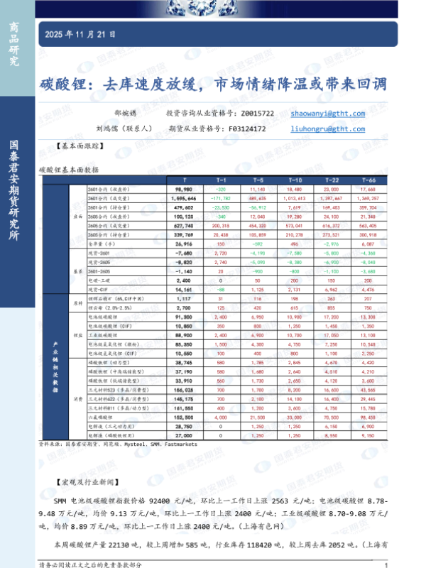 【国泰君安期货】【202512】碳酸锂:偏弱震荡,关注尼日利亚停矿事件发酵-3页 证券期货研究报告