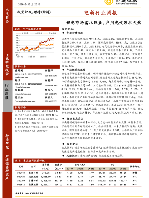 【财通证券】【20201220】20201220-财通证券-电新行业周报:锂电市场需求旺盛,户用光伏装机火热-14页 行业研究
