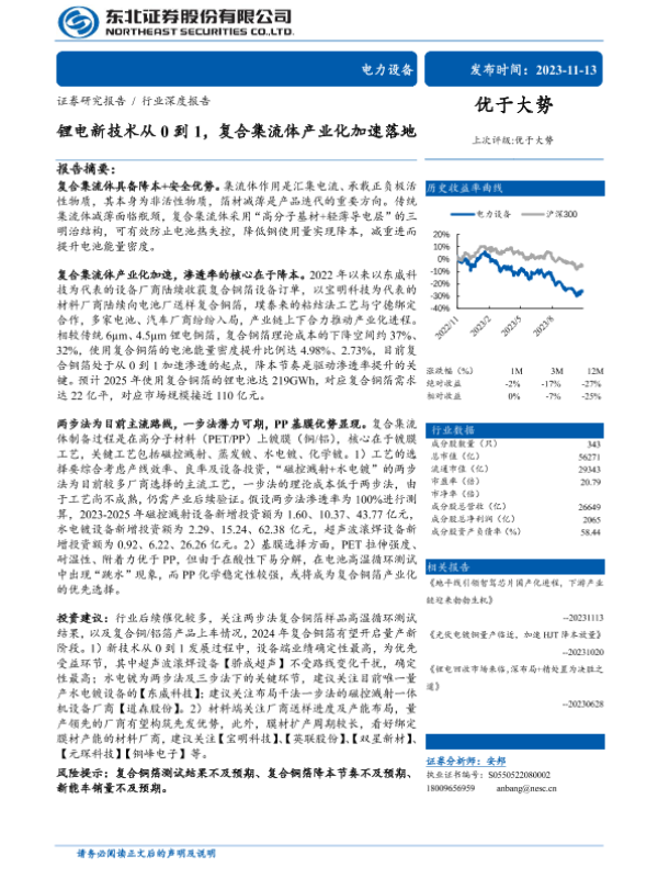 【东北证券】【20231113】锂电新技术从0到1,复合集流体产业化加速落地-31页 行业研究