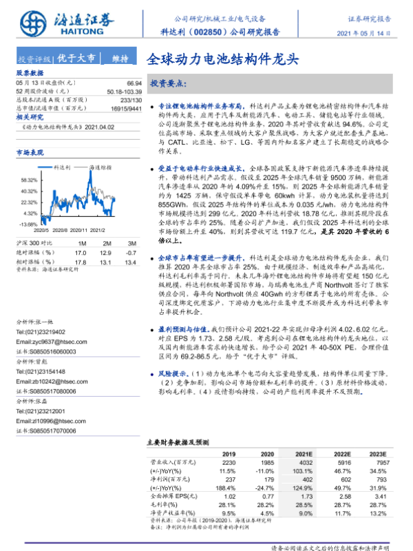 【海通证券】【20210514】20210514-海通证券-科达利-002850.SZ-公司研究报告:全球动力电池结构件龙头-22页 行业研究