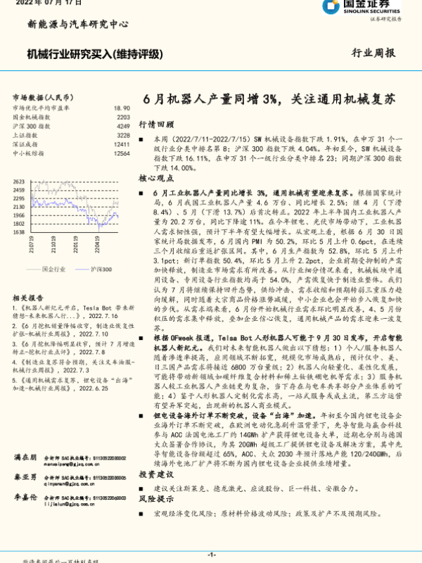 【国金证券】【20220717】20220717-国金证券-机械行业研究:6月机器人产量同增3%,关注通用机械复苏-21页 行业研究