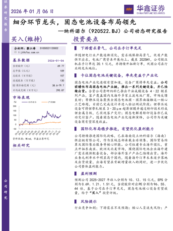 【华鑫证券】【2026】细分环节龙头,固态电池设备布局领先-5页 公司研究