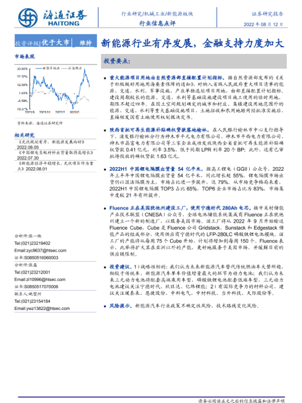 【海通证券】【20220812】20220812-海通证券-新能源板块行业信息点评:新能源行业有序发展,金融支持力度加大-2页 行业研究