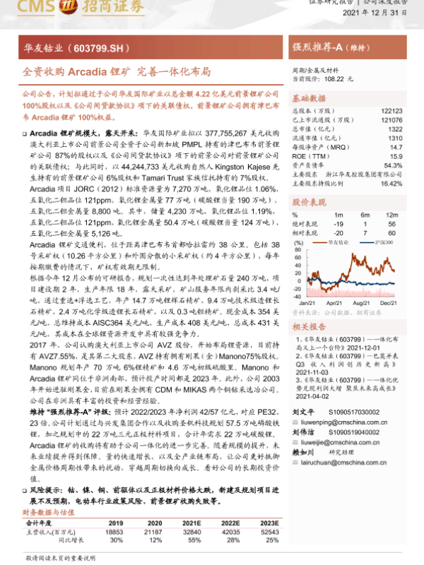 【海通证券】【20211231】全资收购Arcadia锂矿 完善一体化布局-14页 证券期货研究报告