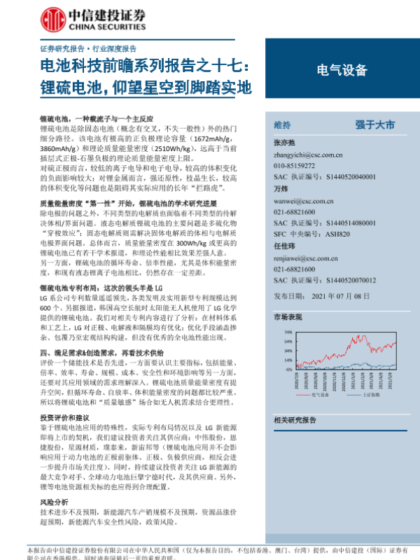 【中信建投证券】【20210708】电气设备行业电池科技前瞻系列报告之十七:锂硫电池,仰望星空到脚踏实地-26页 行业研究