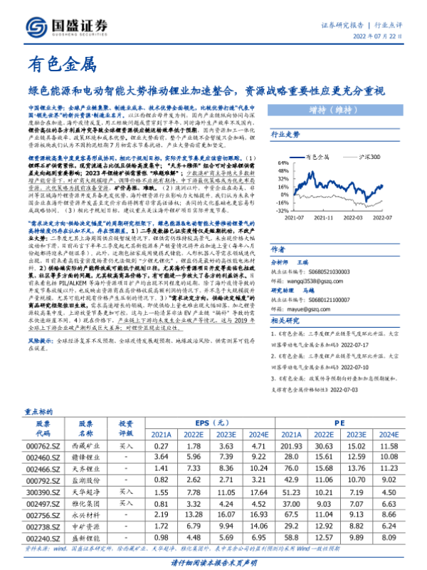 【国盛证券】【20220722】有色金属:绿色能源和电动智能大势推动锂业加速整合,资源战略重要性应更充分重视-10页 行业研究