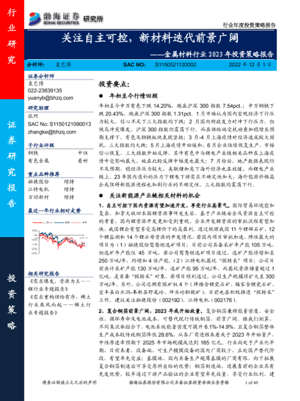 【渤海证券】【20221201】金属材料行业2023年投资策略报告:关注自主可控,新材料迭代前景广阔-40页 行业研究