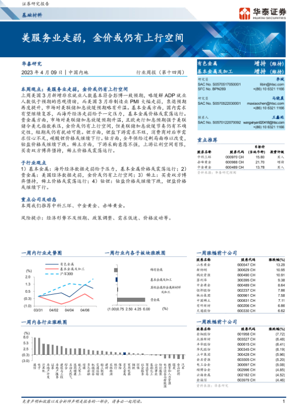【华泰证券】【20230409】基础材料行业周报(第十四周):美服务业走弱,金价或仍有上行空间-18页 行业研究