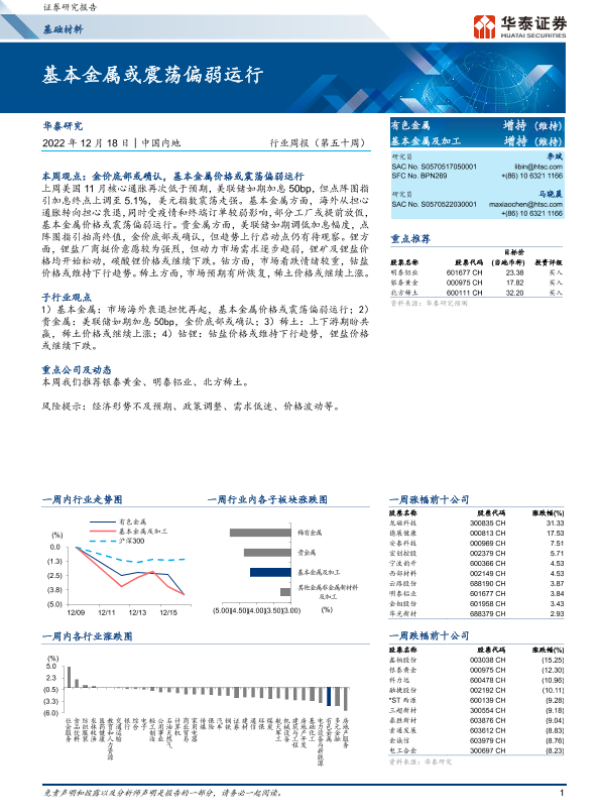 【华泰证券】【20221218】基础材料行业周报(第五十周):基本金属或震荡偏弱运行-17页 行业研究