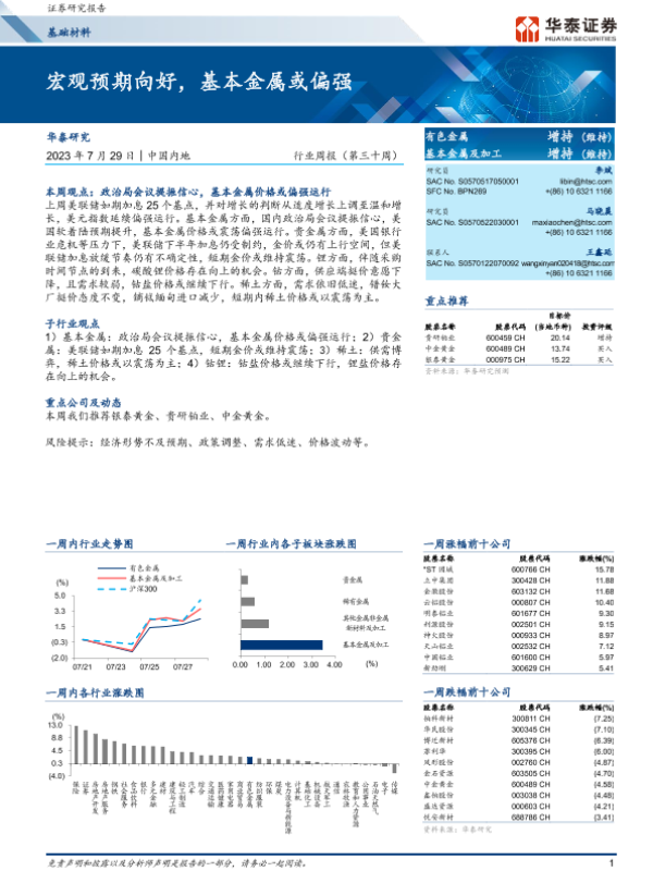 【华泰证券】【20230729】20230729-华泰证券-基础材料行业周报(第三十周):宏观预期向好,基本金属或偏强-17页 行业研究