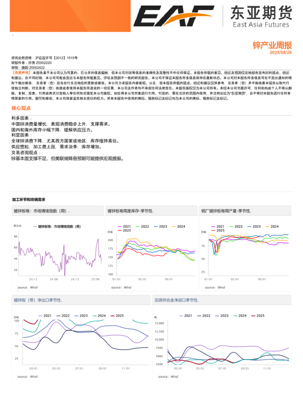 【东亚期货】【20250829】锌产业周报-5页 证券期货研究报告