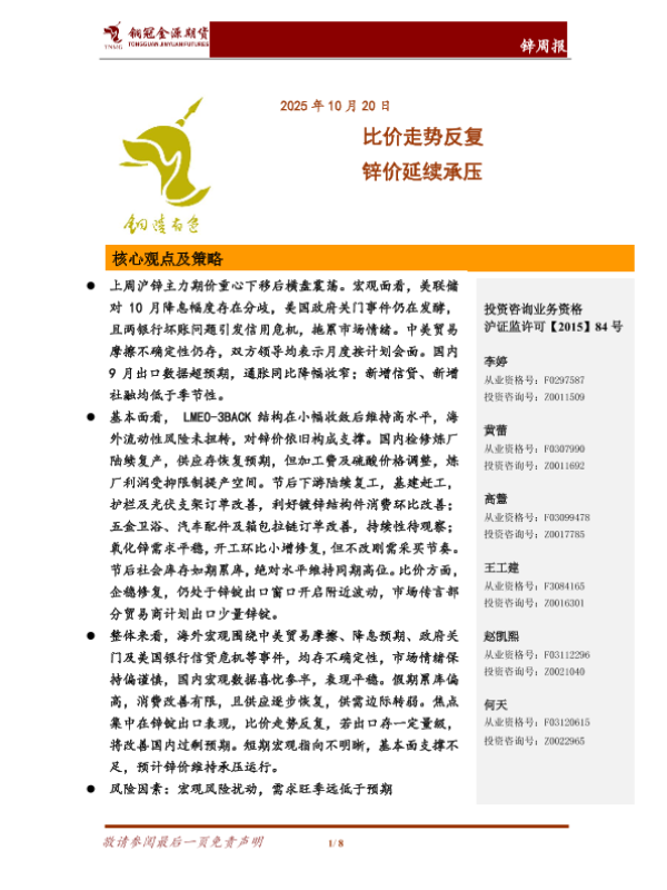 【铜冠金源期货】【202510】比价走势反复 锌价延续承压-8页 证券期货研究报告