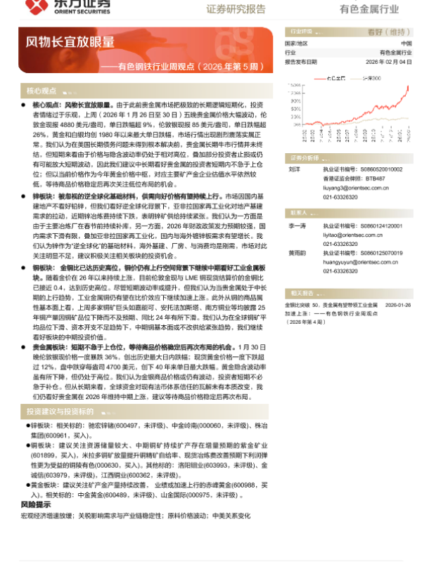 【东方证券】【202602】有色钢铁行业周观点(2026年第5周):风物长宜放眼量-23页 证券期货研究报告