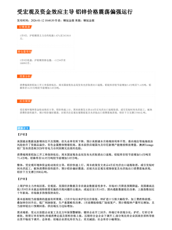 【铜冠金源期货】【202601】受宏观及资金效应主导 铝锌价格震荡偏强运行-2页 证券期货研究报告