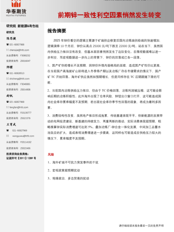 【华泰期货】【202510】前期锌一致性利空因素悄然发生转变-10页 证券期货研究报告