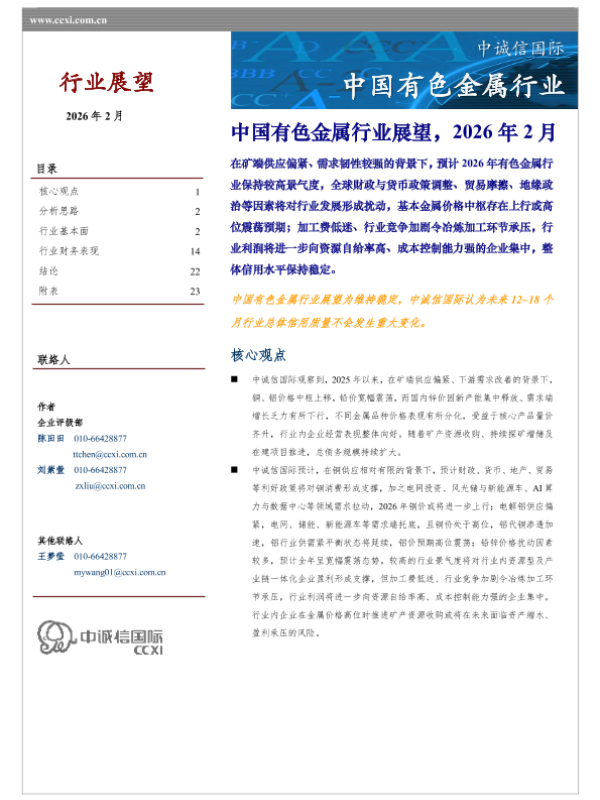 【中诚信国际】【202602】中国有色金属行业展望,2026年 2月-29页 行业研究