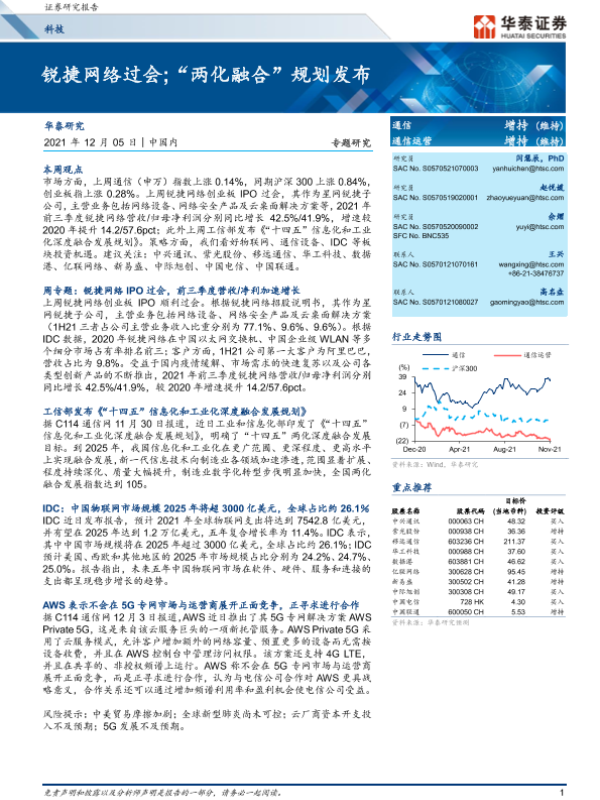 【华泰证券】【20211205】科技:锐捷网络过会;“两化融合”规划发布-22页 行业研究