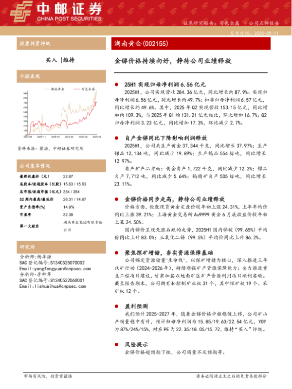【中邮证券】【202509】金锑价格持续向好,静待公司业绩释放-5页 证券期货研究报告