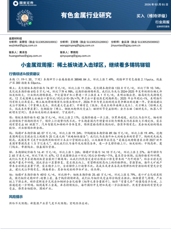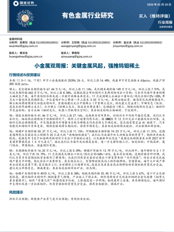 【国金证券】【202601】有色金属行业小金属双周报:关键金属风起,强推钨钼稀土-14页 证券期货研究报告