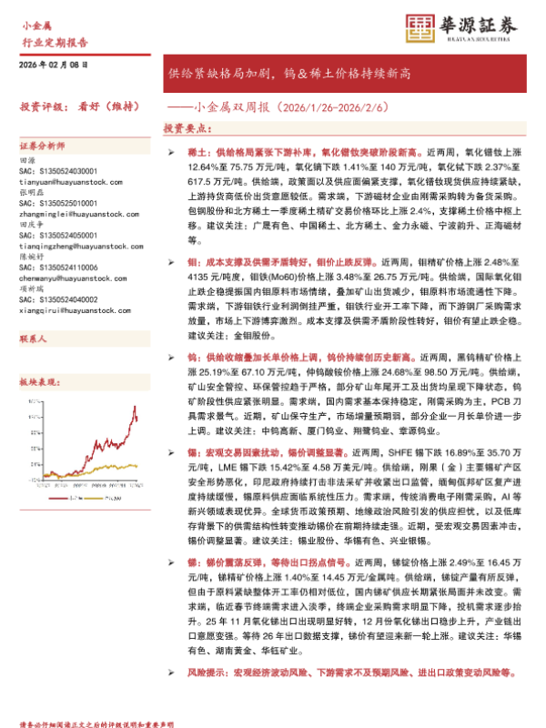 【华源证券】【202601】供给紧缺格局加剧,钨&稀土价格持续新高-11页 证券期货研究报告