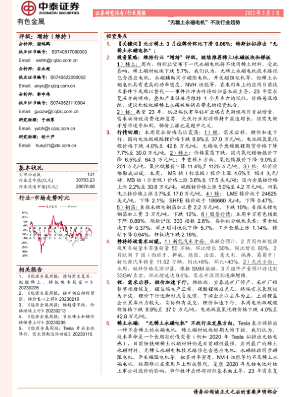 【中泰证券】【20230305】20230305-中泰证券-有色金属行业周报:“无稀土永磁电机”不改行业趋势-25页 行业研究